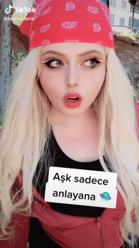 Defne Deniz, wearing a red bandana and black shirt, shares a message: 'Love is only for those who understand'.