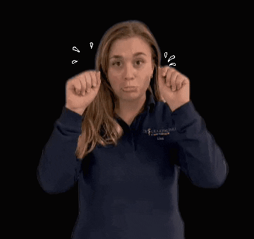 Woman from De Graafschap Dierenartsen making a sad, pouting face with hands near her ears.
