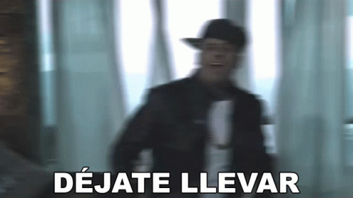 Nicky Jam in a music video clip, with the Spanish text 'DÉJATE LLEVAR' (Let Yourself Go) overlaid.