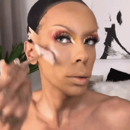 Bianca Dellafancy applies makeup, showcasing a dramatic look with contouring and highlighting.
