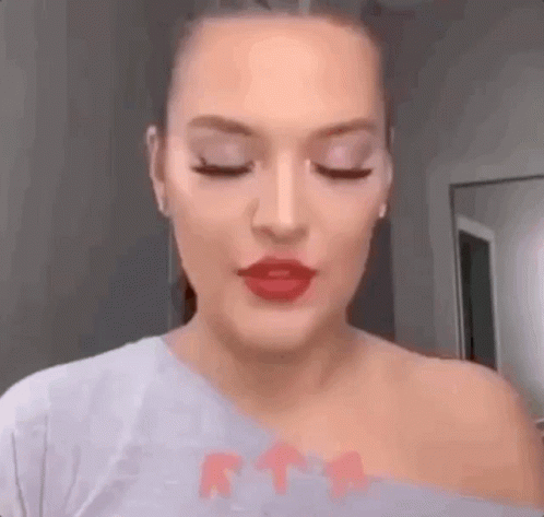 Demet Akalın applies red lipstick, showcasing her makeup.