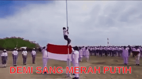 Joni Johannes Adekalla bravely climbs a flagpole during an Indonesian Independence Day flag ceremony.
