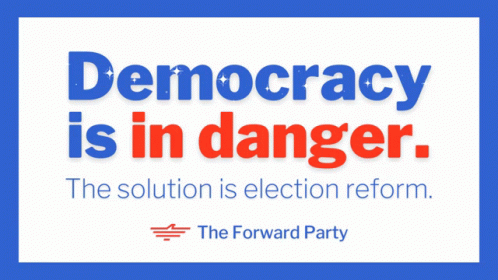 A message from The Forward Party stating 'Democracy is in danger' and advocating for election reform.