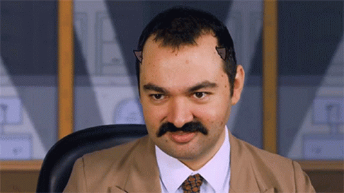 Galo Frito's 'Demonio Mal' character, a man with a mustache and demon horns, looking at the camera.