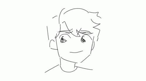 A black and white line drawing of a boy's face, smiling while tears stream from his eyes, depicting hidden sadness.