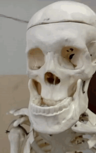 A detailed skeleton model moves its jaw in a 'sigma' meme style, featuring the Derzko reference.