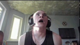 Streamer Derzko69 has an extreme, shocked reaction, falling back in his chair while wearing headphones and a microphone.