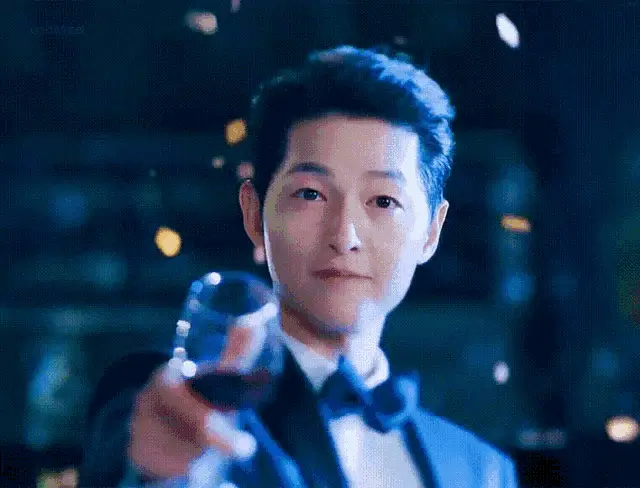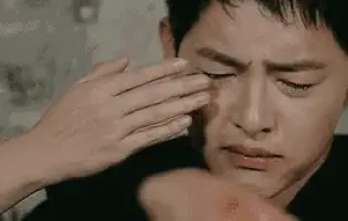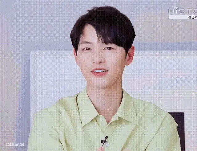 Song Joong-ki as Yoo Shi-jin from Descendants of the Sun, smiling with 'MY SUN' text.