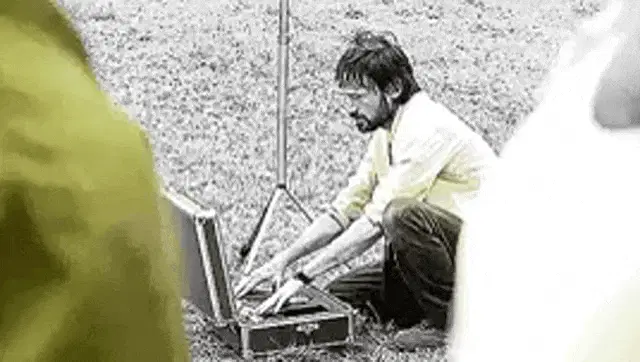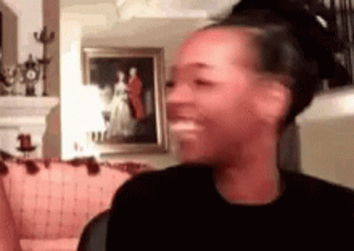 Khia (Desmond Stillnotdesmond) laughing and sticking out her tongue in a living room.