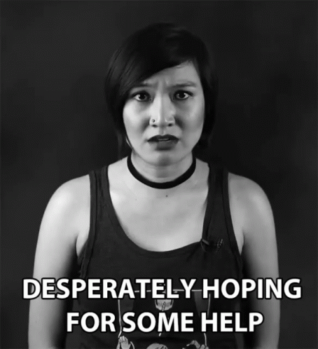A woman with a distressed expression looks at the camera, with the text 'Desperately Hoping For Some Help' displayed.