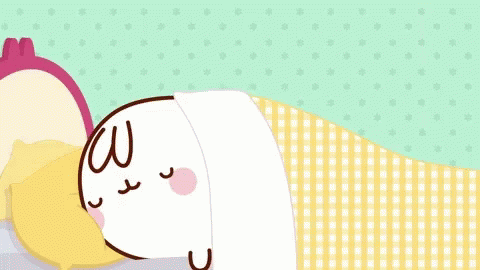 Piu Piu the chick playfully wakes up Molang the rabbit in bed, leading to a cute morning interaction.