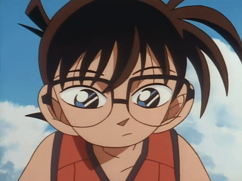 Conan Edogawa from Detective Conan holds a broken capsule, looking intently at it.