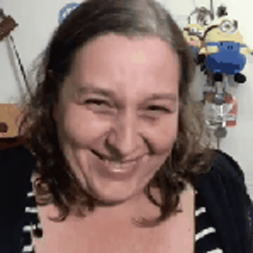 Detremura Rindo laughing and smiling for the camera, with Minion plush toys in the background.