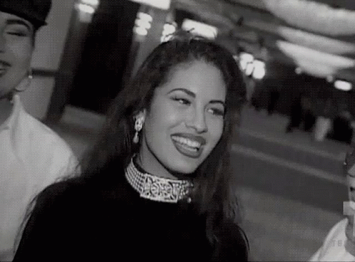 Aaliyah smiling brightly, captured in black and white, wearing a choker necklace and elegant earrings.