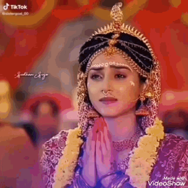 Devi Radha and Krishna in a moment of divine prayer, hands folded in devotion.