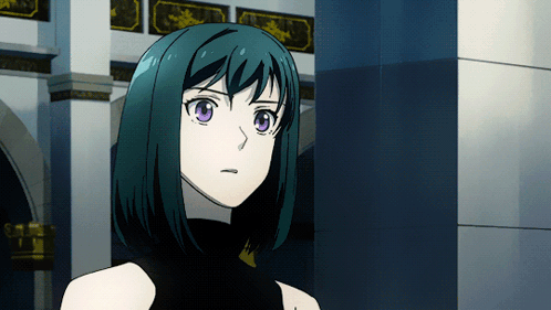 Lenalee Lee (Linali Lee) from D.Gray-man with dark green hair and purple eyes, wearing a black top.