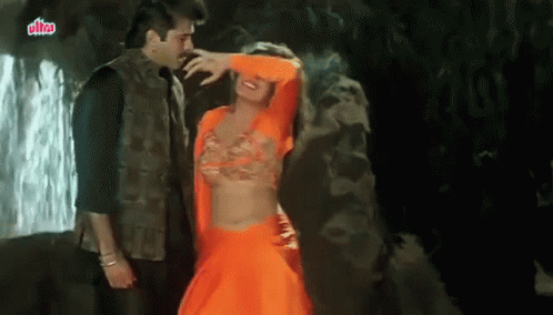 A woman dancing gracefully to the iconic Hindi song 'Dhak Dhak Karne Laga'.