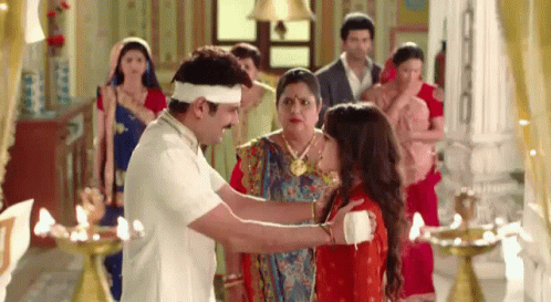 Dharam Suryavanshi (Amar Upadhyay) and Meera Modi (Tanya Sharma) share an emotional hug after he bandages her arm.