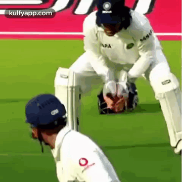 MS Dhoni, the Indian wicket-keeper, intensely appeals for a wicket during a cricket match.