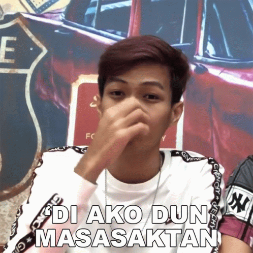 Jhon Mark Perez says 'Di Ako Dun Masasaktan' (I won't get hurt there) while covering his nose.