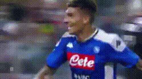 Di Lorenzo, wearing a blue Napoli jersey, celebrates on the field after a goal or significant play.