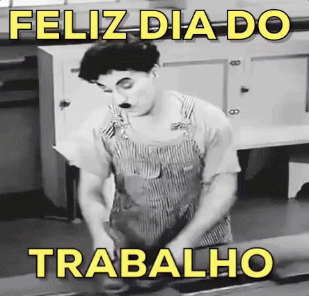 Charles Chaplin as The Tramp in Modern Times, celebrating Labor Day with his iconic factory work scene.