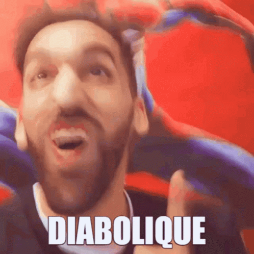 Kad, also known as Mrpeps, makes a diabolical funny face with an exaggerated expression, with the word 'DIABOLIQUE' overlaid.
