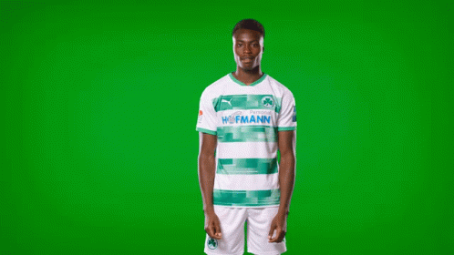 Dickson Abiama, player for SpVgg Greuther Fürth, proudly shows his number 19 jersey.