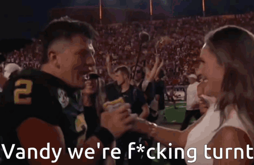 Football player Diego Pavia exclaims 'Vandy we're f*cking turnt' during a post-game interview with a reporter.