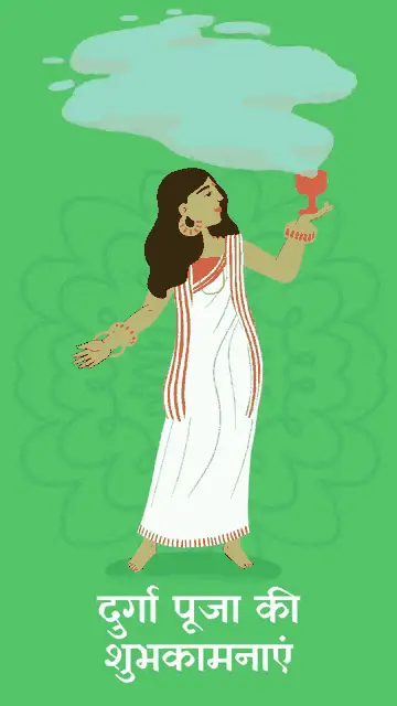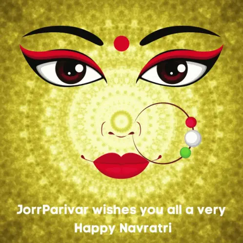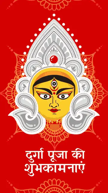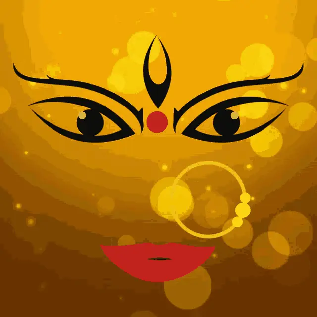 Digital Pratik's animated graphic for Happy Durga Puja, featuring a stylized eye of Goddess Durga on a sparkling golden background.