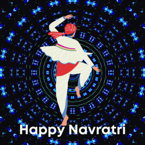 Digital Pratik celebrates Happy Navratri with a vibrant illustration of a person performing a traditional dance.