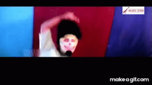 Malayalam actor Dileep as Joker removes his mask, revealing a tearful expression against a colorful backdrop.