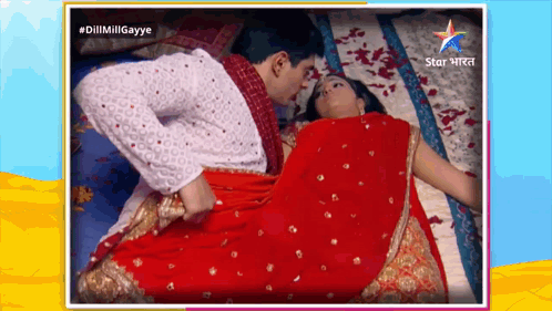 Armaan and Riddhima share a romantic moment on a bed, from the popular Indian show Dill Mill Gayye.