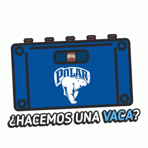 Animated graphic of a blue Polar cooler with the text '¿HACEMOS UNA VACA?' (Shall we pitch in?).