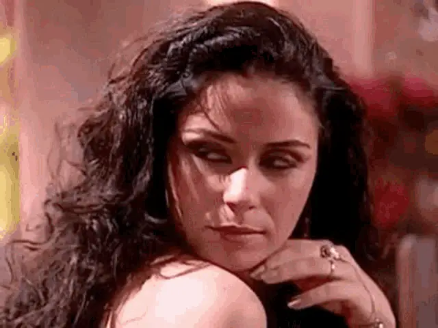 Dina Sfat delivers an intense performance in a dramatic scene from the Brazilian telenovela Selva De Pedra.