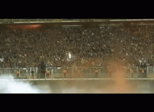 Dinamo Zagreb's Bad Blue Boys (BBB) fan group creating a smoky atmosphere with flares in a stadium.