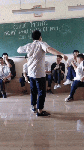 Đinh Quang Nghĩa performs an energetic and funny dance in front of his classmates in celebration of Vietnamese Women's Day.