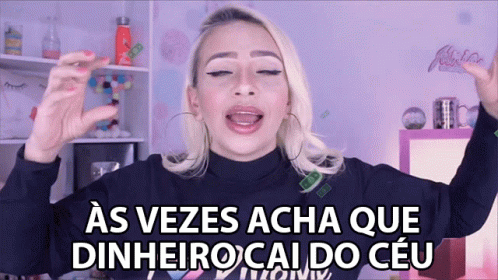 Junia Gabriela discusses money not falling from the sky, with animated money symbols around her.