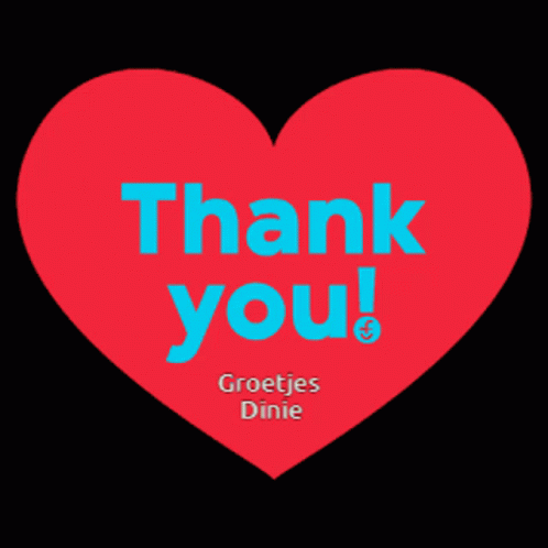 Dinie presents a vibrant red heart graphic with 'Thank You' inscribed, set against a clean white background.