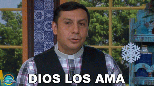 A man says "God loves you" on the Mexican TV show "Venga La Alegria", with a snowflake decoration in the background.