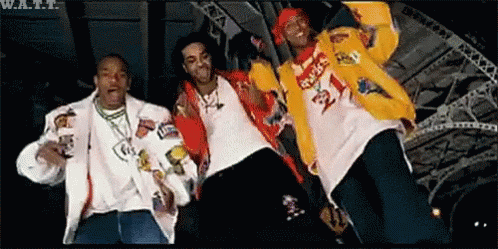 Dipset members posing together, one wearing a Chicago Bulls jersey, in a dynamic urban setting.