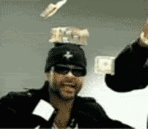 Dipset Birdgang member making it rain money, wearing sunglasses and a beanie with a cross.