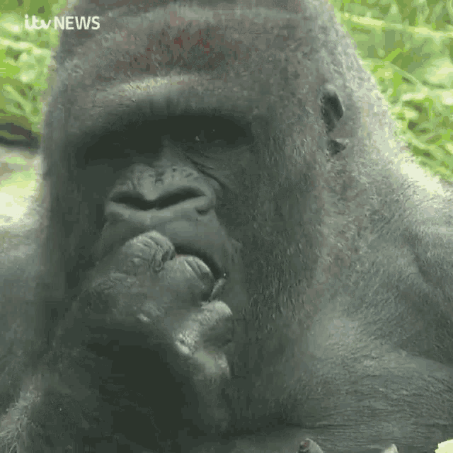 Close-up of a gorilla enjoying a piece of red fruit, featured on ITV News.
