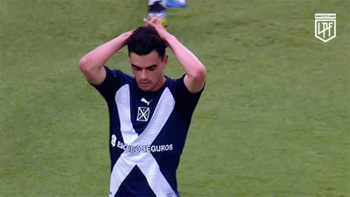 Alan Soñora, a soccer player for Club Atlético Independiente, shows disappointment on the field.