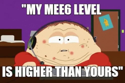 Cartman from South Park boasts 'My MEE6 level is higher than yours' while wearing a gaming headset.