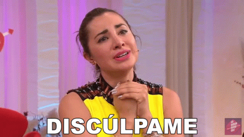 Woman from Enamorandonos crying and asking for forgiveness, with 'DISCÚLPAME' displayed on screen.
