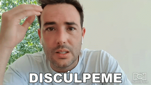 Sebastian Martinez, as Mauricio, apologizes with the word 'DISCÚLPEME' overlaid on screen.