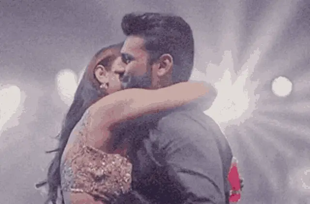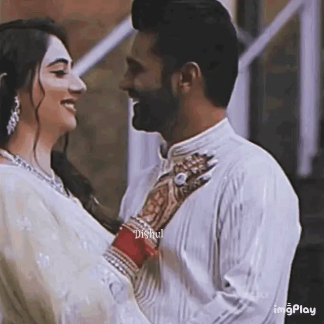Dishul, a happy couple, embracing and holding a pink heart with "Love" written on it.