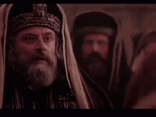 Man in historical attire passionately shouts "Misinformation!" amidst a group of men in a dramatic scene.