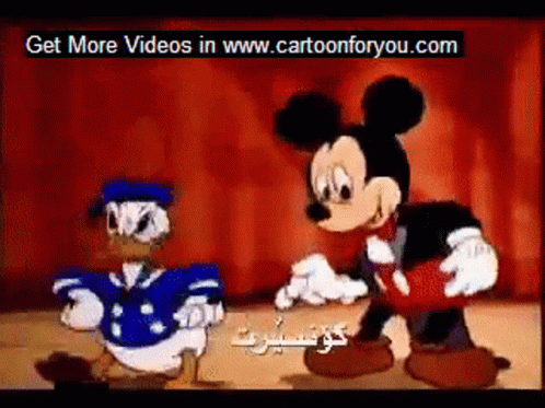Mickey Mouse and Donald Duck in a 'Beadon' cartoon, with a website promotion.